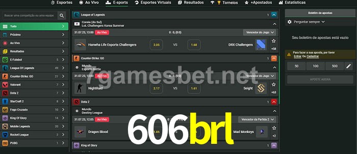 A aposta 606brl oferece aos jogadores a experiência mais conveniente de apostas em eSports!